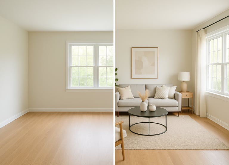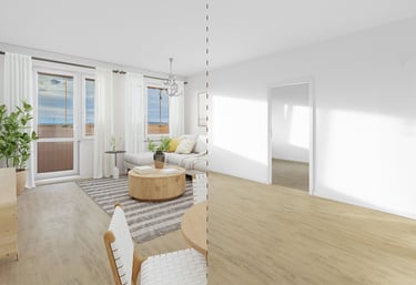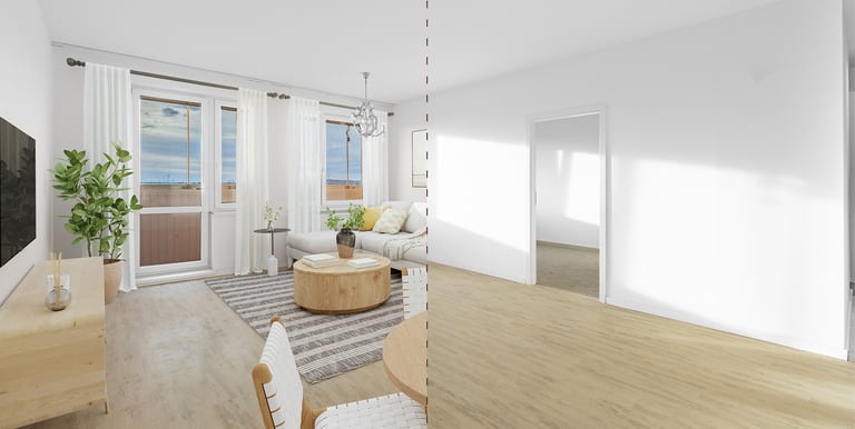 Cena zahŕňa dekorácie, aranžovanie, textílie a kompletná úprava nehnuteľnosti pred fotením. S možnosťou doplnkovej služby upratovania za poplatok.