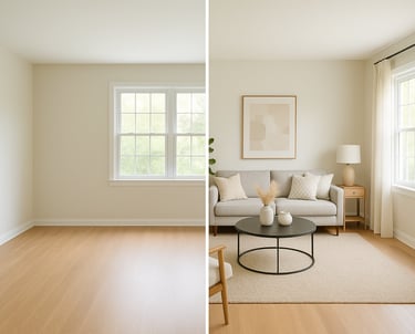 Cena zahŕňa dekorácie, aranžovanie, textílie a kompletná úprava nehnuteľnosti pred fotení. S možnosťou doplnkovej služby upratovania za poplatok.